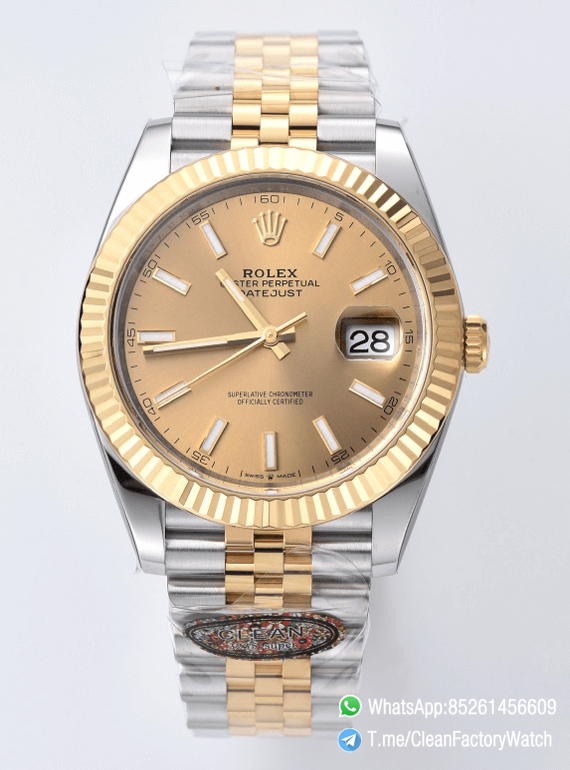 ● Strap: Stainless steel oyster bracelet with 18k yellow gold plated middle links;