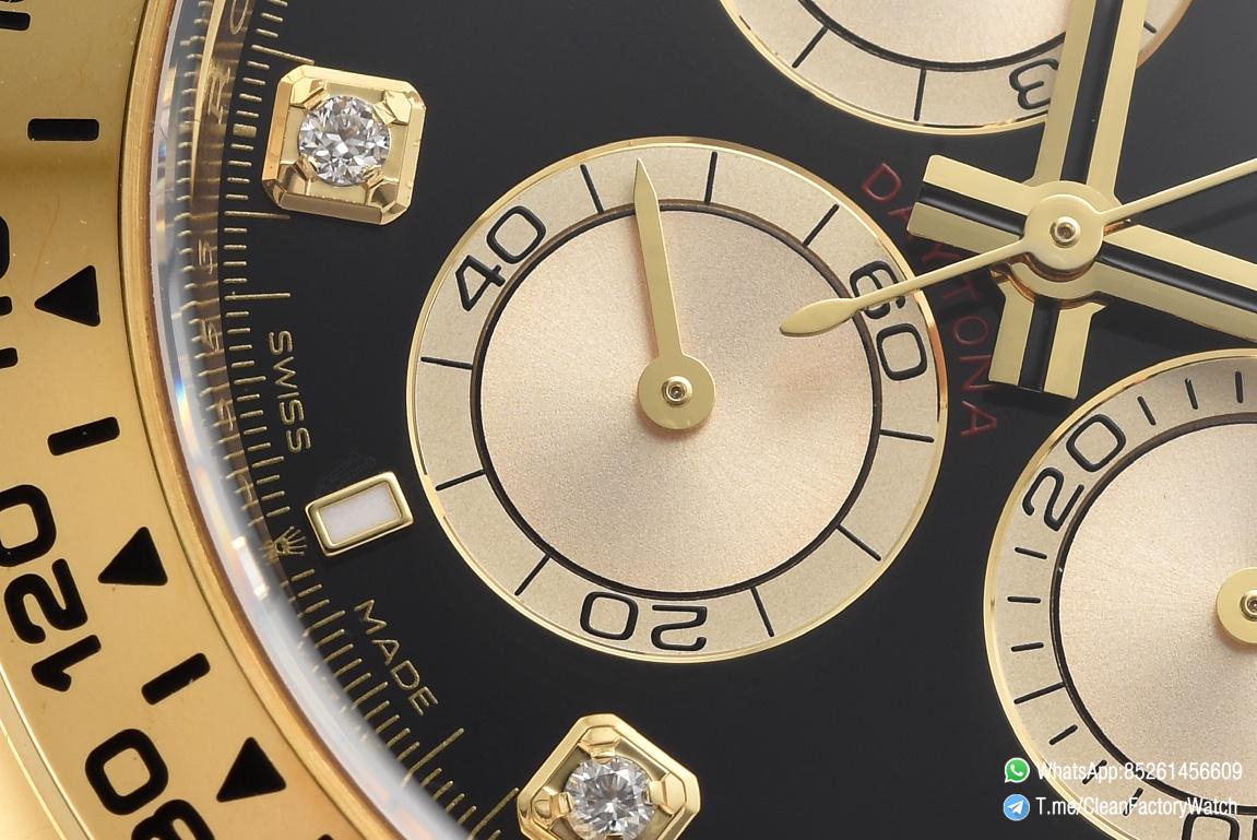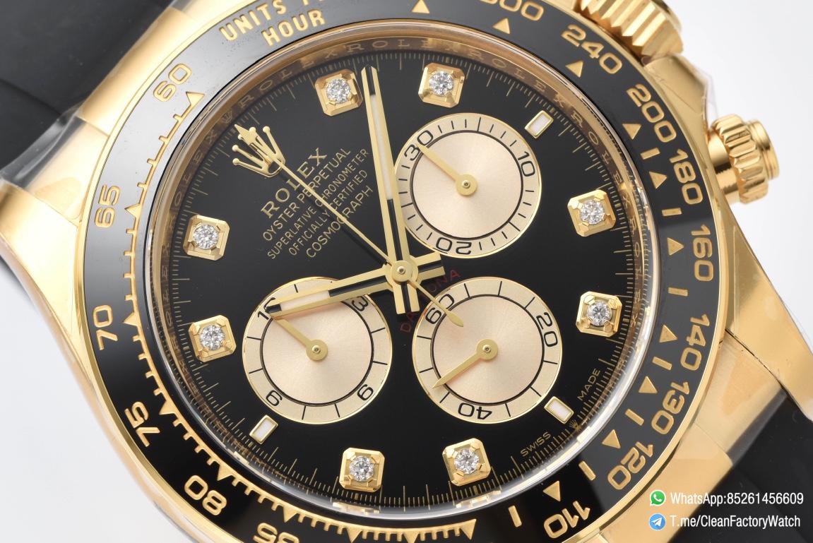 ● Bezel: Black ceramic tachymeter bezel with 18k yellow gold plated steel wrapped;