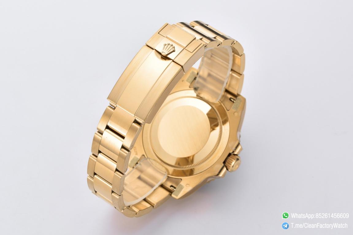 ● Strap: Full yellow gold plated on 904L stainless steel bracelet with perfect SEL, clasp and divers extension and smooth screws;