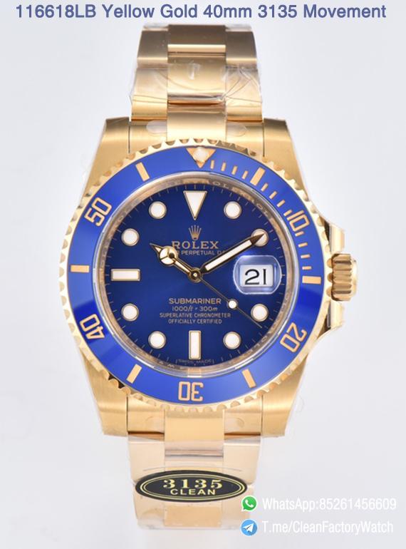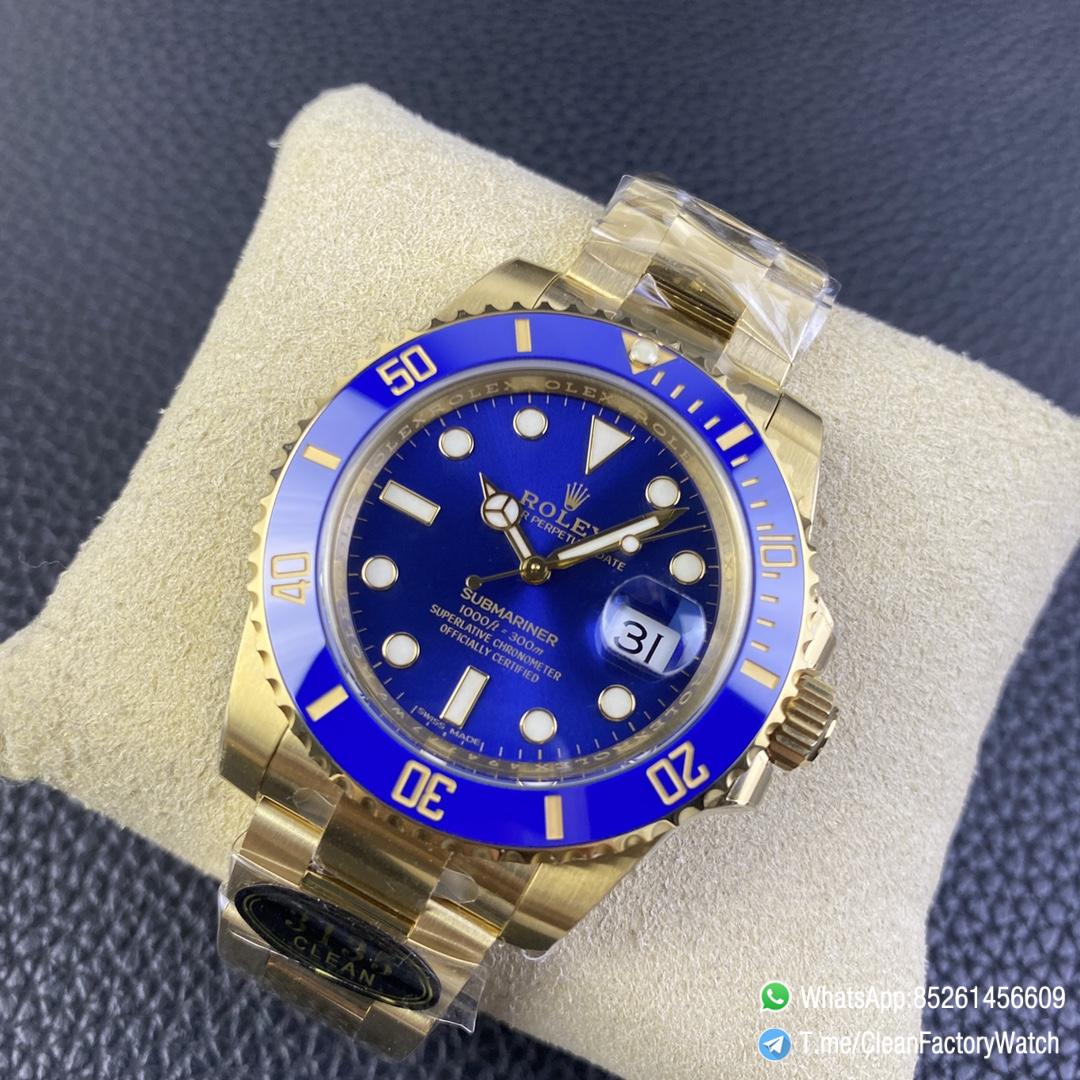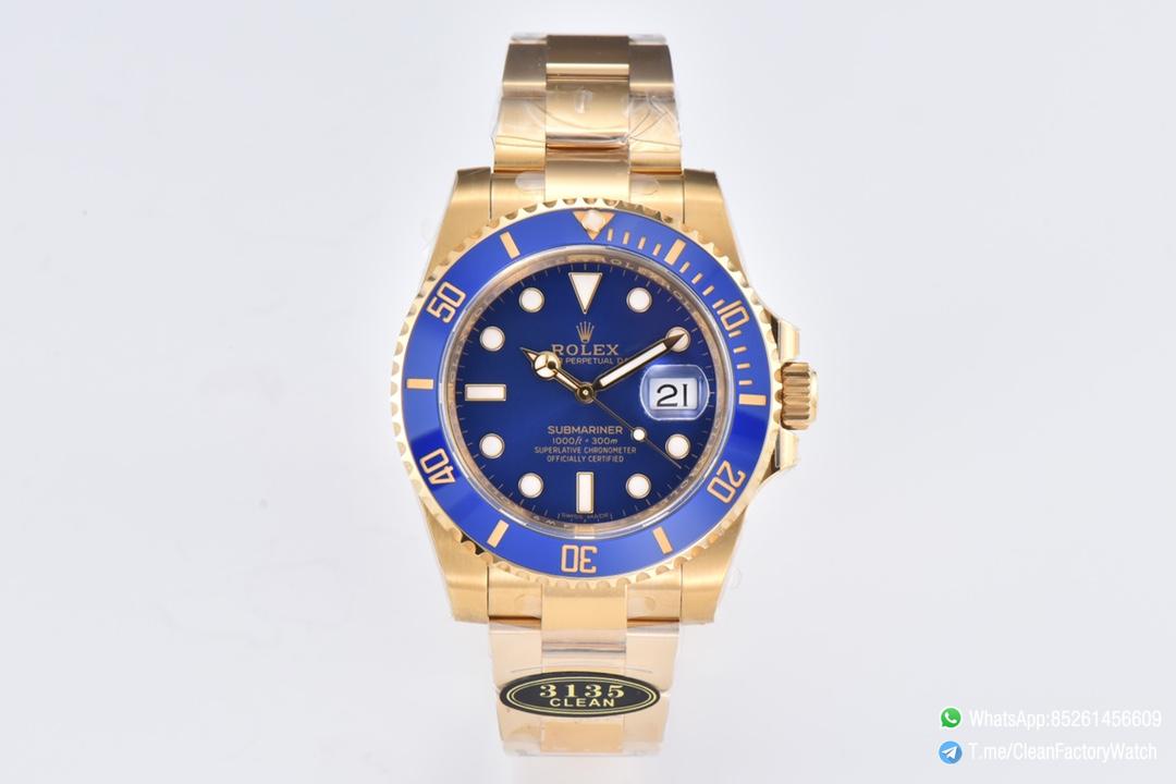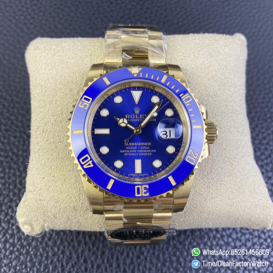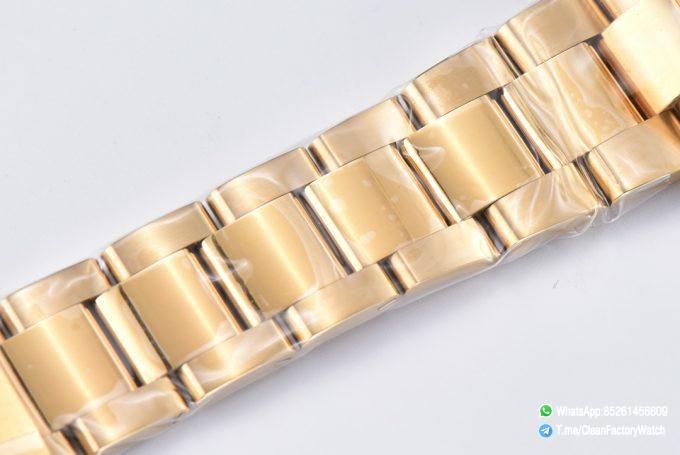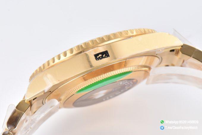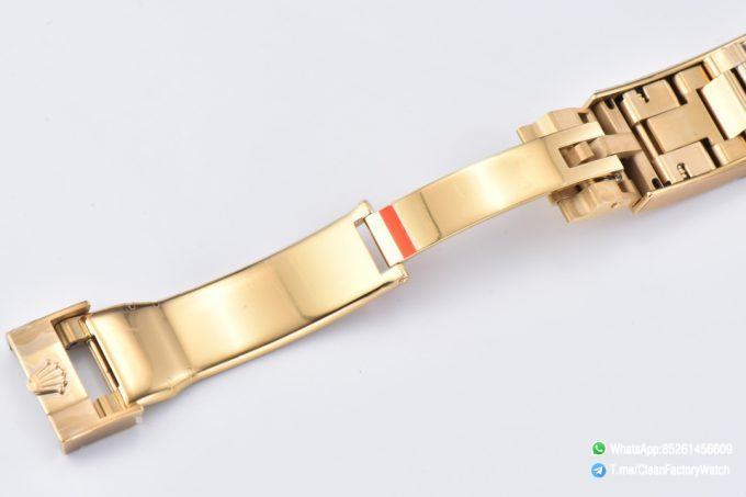 ● Strap: Full yellow gold plated on 904L stainless steel bracelet with perfect SEL, clasp and divers extension and smooth screws;