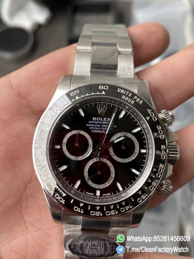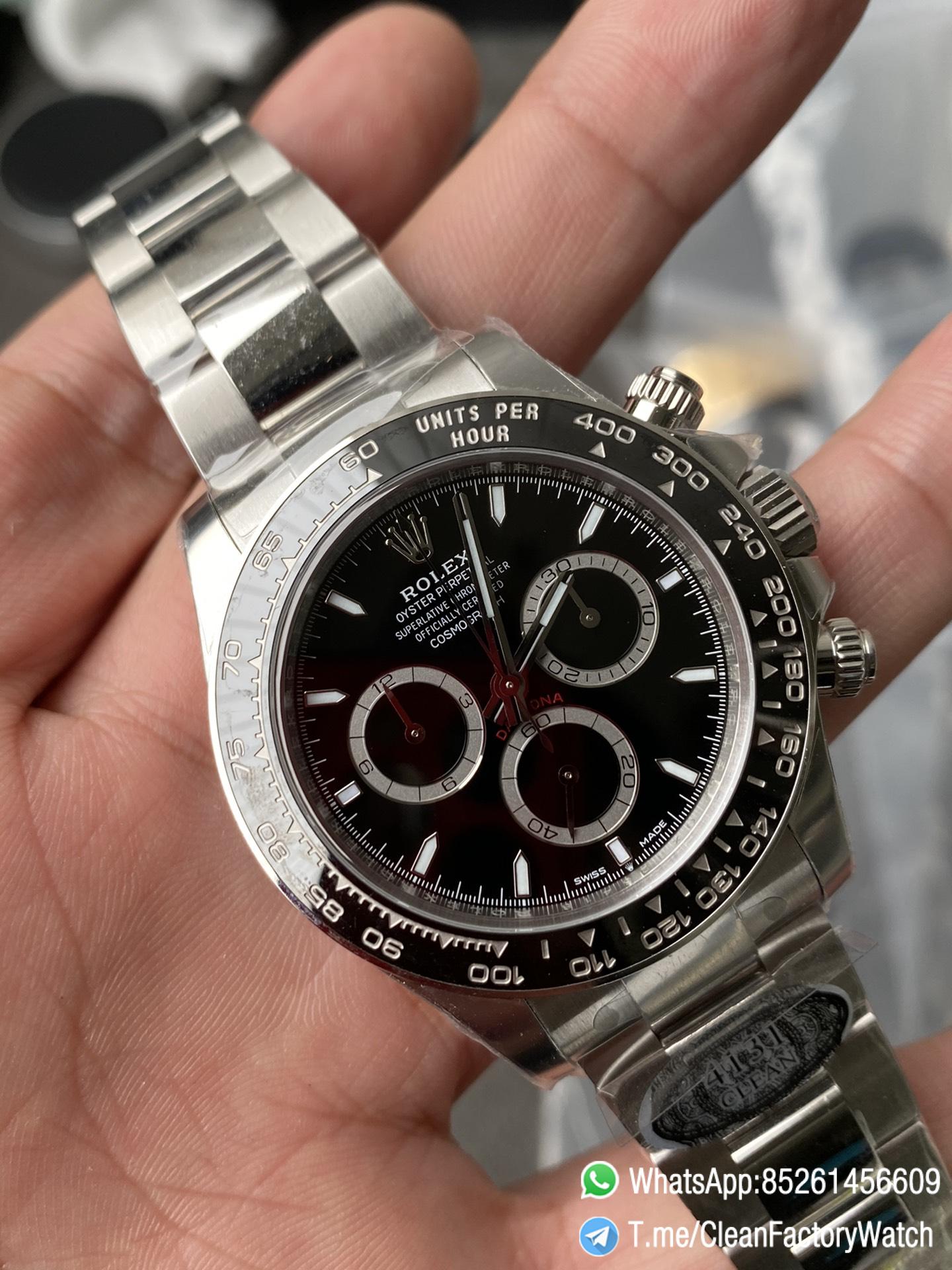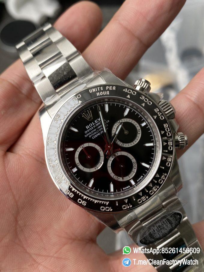 ● Bezel: Black ceramic tachymeter bezel with steel wrapped;