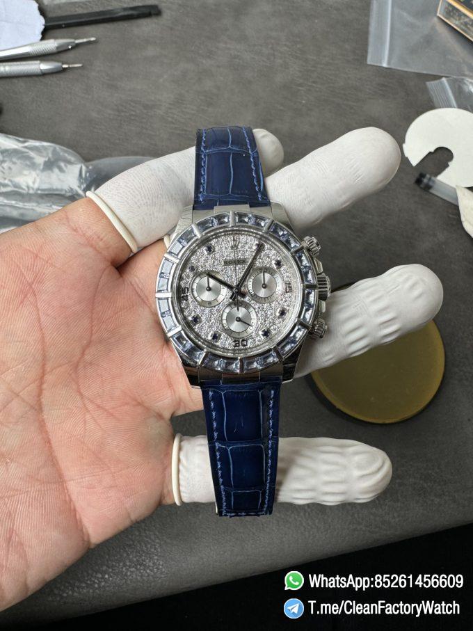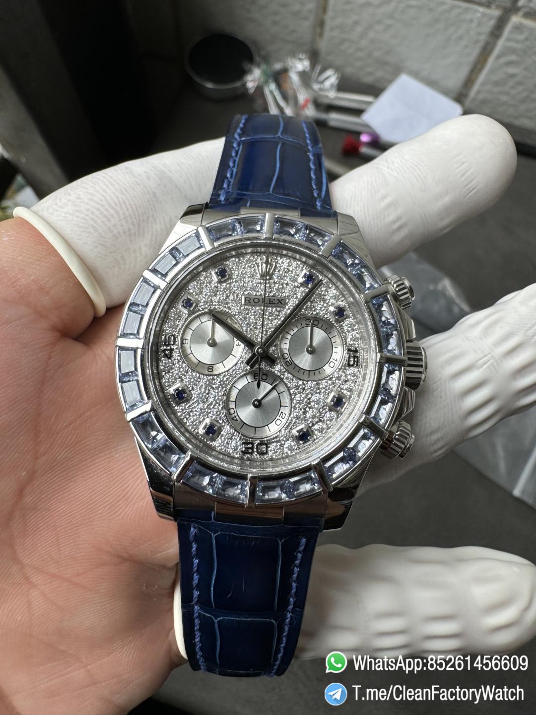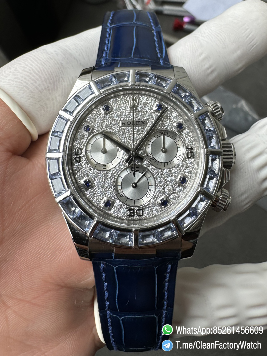 ● Dial: Full Diamond Pave Dial with Blue Cushion Princess Diamonds Hour Markers;
