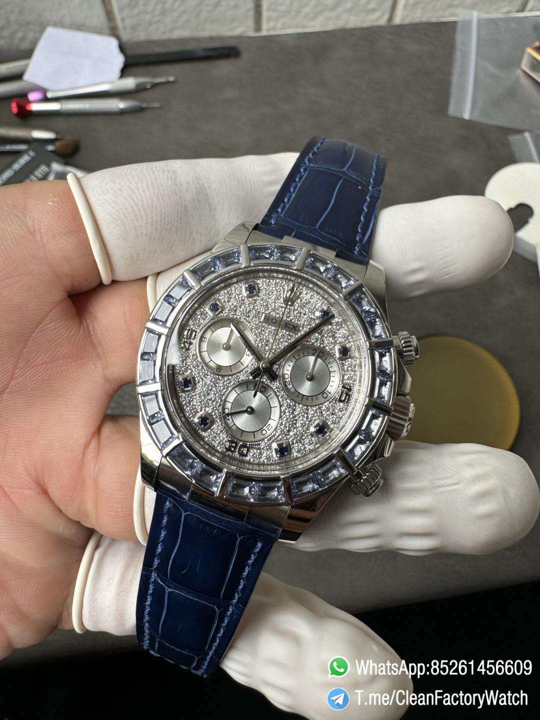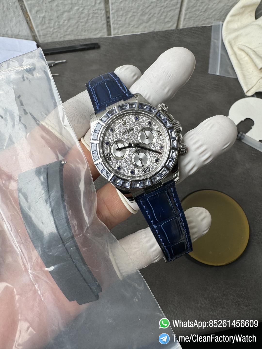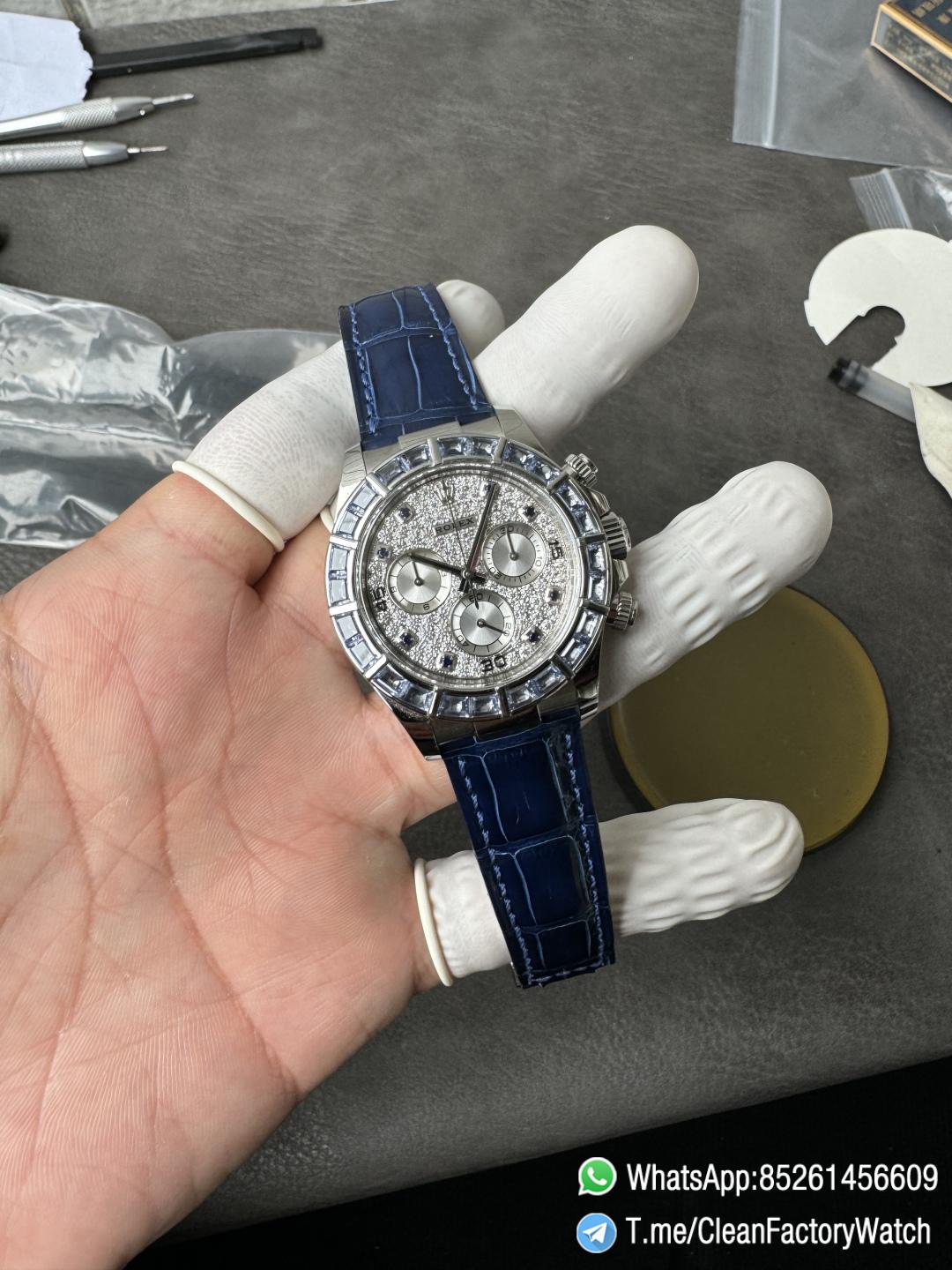 ● Dial: Full Diamond Pave Dial with Blue Cushion Princess Diamonds Hour Markers;